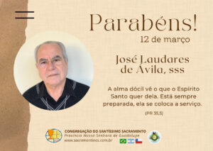 Com alegria e gratidão a Deus partilhamos com todos a notícia de mais um aniversário de nascimento do nosso caríssimo Padre José Laudares, quem hoje, dia 12 de março, completa mais um ano de vida.