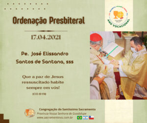 O nosso caríssimo Pe. José Elissandro Santos de Santana SSS, celebra hoje o seu segundo ano de ordenação Presbiteral. Como membros da mesma família eymardiana celebramos e nos alegramos junto com ele por este dia especial e agradecemos ao nosso Deus pelo dom do seu ministério.